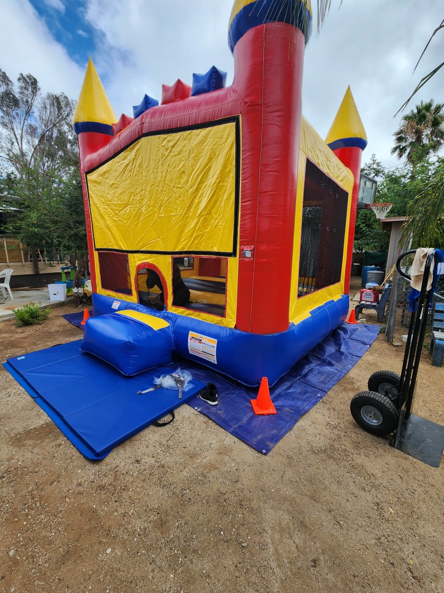 A maximum of 5-6 kids of equal size at one time for bounce houses, and 1 person at a time for slides is what most inflatable manufacturers recommend.