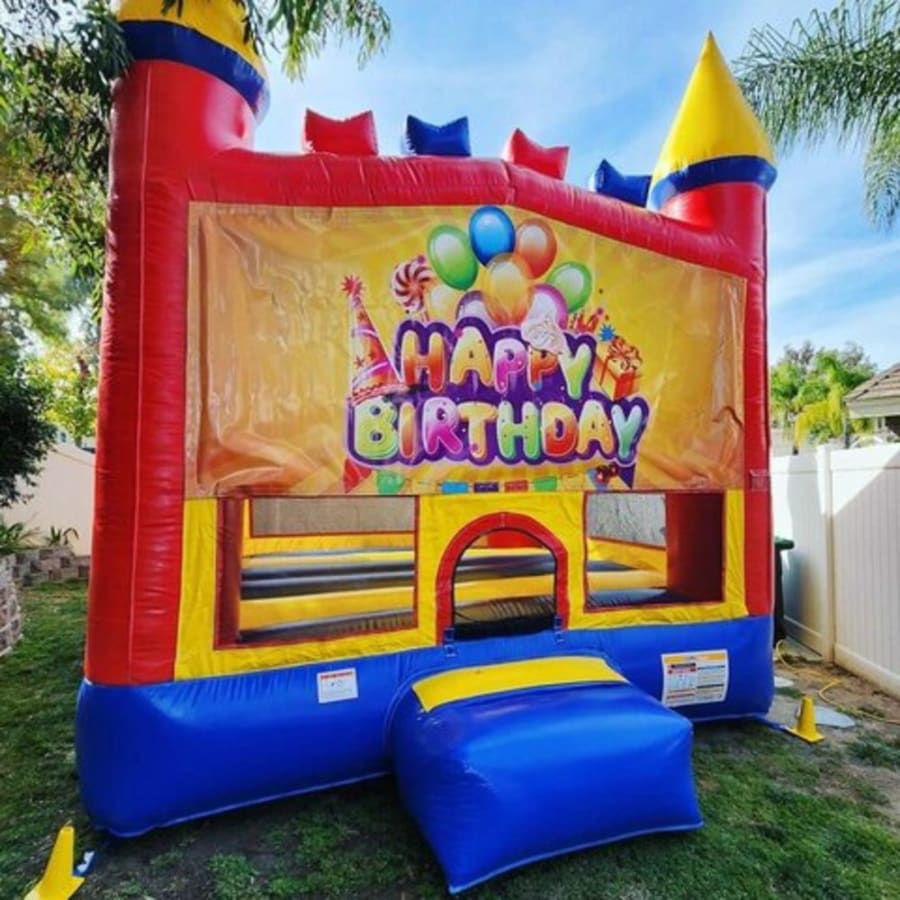 A maximum of 5-6 kids of equal size at one time for bounce houses, and 1 person at a time for slides is what most inflatable manufacturers recommend.